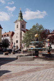 Nun sind wir gut gestärkt für einen Spaziergang durch Zwettl und erfreuen uns an den hübschen bunten Fassaden, dem emsigen Treiben an diesem Samstag-Nachmittag und vor allem an dem köstlichen Bio-Eis aus dem Bio-Genusskaffeehaus Hölzl. Wir probieren uns durch Mohn-, Joghurt-Kirsch-, Apfelstrudel- und Holunderblüten-Eis und genießen es in der Sonne am Hunderwasserbrunnen.
