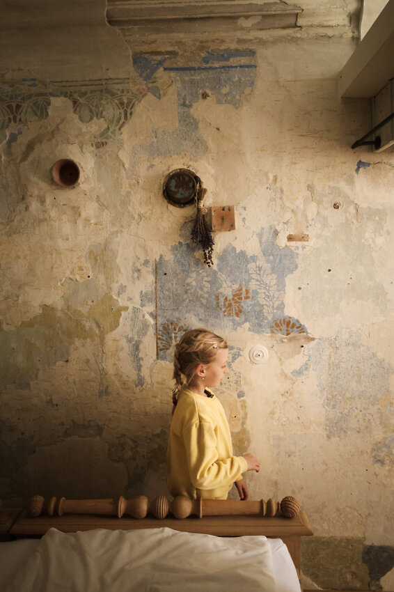 Abends wird die Küche nochmals angeheizt und wir bereiten einen bunten Salat und eine schnelle Pasta mit vielen verschiedenen Kräutern aus dem Garten im Innenhof zu. Müde fallen wir ins Bett und bewundern im letzten Licht des Tages die schönen Stuck-Elemente an der Decke, sowie die geschichtsträchtige bunte Patina an manchen Teilen der Wände.