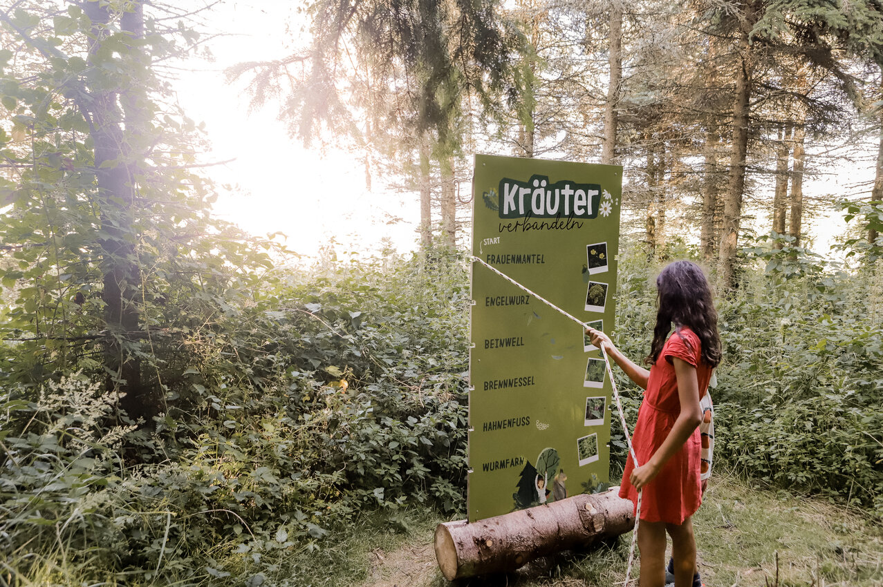 Juli. Ein heißer Sommertag im Kräutergarten von SONNENTOR in Sprögnitz.  Dennoch weht eine angenehme, kühlende Brise. Nicht nur im Schatten der Bäume findet man Erholung und Abkühlung. Seit Kurzem findet man im nahe gelegenen Waldstück ein Kinderparadies vor, oder besser gesagt, einen kreativen Erholungsraum für Klein und Groß: