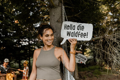 Das Klima des Waldes tut nicht nur unserer mentalen Gesundheit gut, sondern bildet auch die perfekte Basis für körperliche Entspannungstechniken wie Yoga. In Verbindung mit einer bildhaften Geschichte kann Entspannung wunderbar mit einer kindgerechten Massage verbunden werden. Alles, was man dafür benötigt, ist Fantasie und eine Begleitung, die die Massage auf dem Rücken vornimmt. Einfach auf den Baumstämmen Platz nehmen und genießen! Wer noch mehr Entspannung zwischen den Aktivitäten sucht, kann in Folge in der Hängematte baumeln und der Musik des Waldes lauschen.