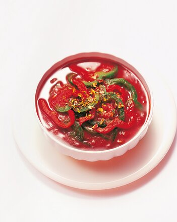 Abschmecken und mit Scharfmacher-Gewürz-Blüten bestreuen.